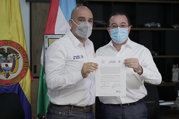 Este miércoles el alcalde de Bello, Óscar Andrés Pérez Muñoz y el director nacional del SENA, Carlos Mario Estrada Molina firmaron un acuerdo mediante el cual se suman voluntades y recursos para impulsar el proyecto "Parque de Artes y Oficios de Bello", que contó con una inversión total de $19.000 millones, de los cuales $16.000 millones son aportados por el SENA para la dotación tecnológica y $3.000 millones por la Administración Municipal.
