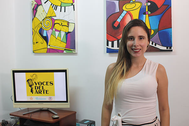 Lorena Bossio tiene 29 años, es cartagenera, administradora de empresas, cantautora y ahora gerente de 'Voces del Arte', emprendimiento que nació gracias al Fondo Emprender en Bolívar. La idea surgió en 2017 cuando ella tomó la decisión de dedicarse a lo que realmente la apasiona: el arte en sus diferentes formas.