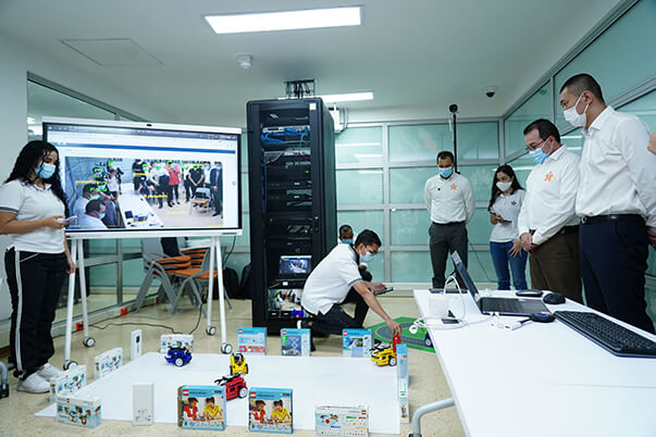 Este espacio está compuesto por dos ambientes de formación: el Laboratorio de Cloud Computing y el Laboratorio de Inteligencia Artificial, los cuales están dotados con computadores y servidores de alto rendimiento; sistemas de identificación facial, detector de aglomeraciones, temperatura y uso de tapabocas, así como un vehículo de conducción autónoma que realizan movimientos libres.