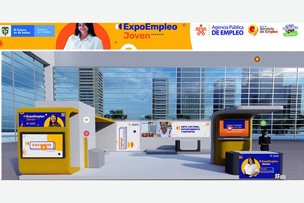 El evento digital liderado por la Agencia Pública de Empelo del SENA, con cobertura nacional, se desarrollará en entornos 3D y 2D con un lobby principal de atención a usuarios, salas de videoconferencias, agenda académica y 33 pabellones regionales con seis stands regionales distribuidos en diferentes áreas de desempeño. Entre ellas se destacan finanzas, administración, ventas y servicios; ingenierías y afines, tecnología, salud, ciencias sociales, operación de equipos, del transporte e industria; así como arte, cultura, esparcimiento y deportes.