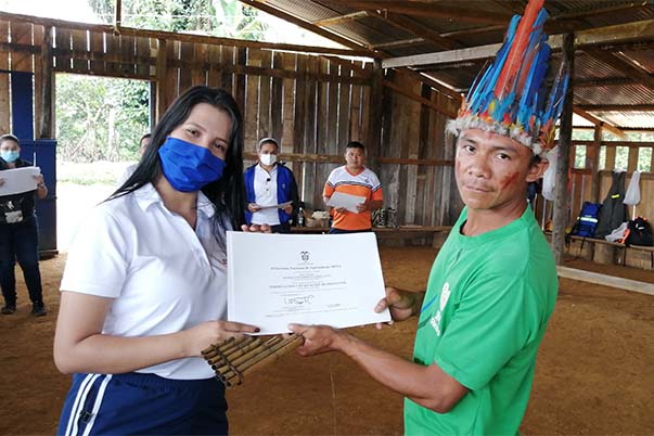 Luz Empir Velásquez Camargo, directora de la Regional, expresa "llegamos a entregarles los certificados de formaciones complementarias que la comunidad recibió durante estos primeros meses del año, el SENA está comprometido con llegar a las comunidades indígenas y no que ellos tengan que desplazarse hasta nuestras instalaciones, es una manera de llegar con calidad y pertinencia muy a la medida para ellos".