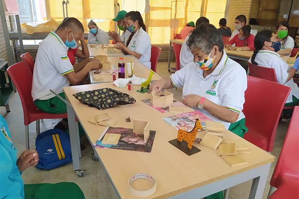 En este proceso de formación se cuenta, además, con la participación de artesanas y adultas mayores, a las cuales se les imparte formación para que puedan llevar a acabo sus ideas de trabajo en casa e ideas de emprendimiento en trabajo de madera.