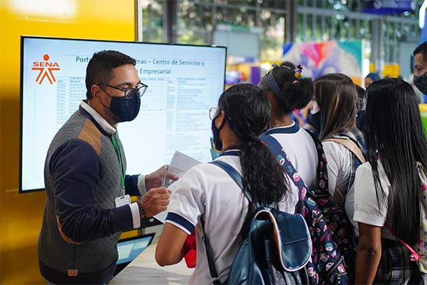 "Participar en esta feria nos permite a nosotros como SENA acercarnos a los jóvenes que están próximos a terminar su estudio bachillerato para mostrarles nuestra oferta que está enfocada en satisfacer la demanda del nuevo mercado laboral de la Cuarta Revolución Industrial; siempre con el objetivo de tener una formación con pertinencia e innovación, pensando en el futuro laboral de nuestros egresados", manifestó Gustavo López de Mesa, subdirector del Centro de Tecnología de la Manufactura Avanzada de la Regional Antioquia.