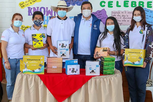 Ambas Instituciones Educativas recibieron 74 kits Microbit, 24 robots y ocho kits de biotecnología, elementos que aproximarán a los jóvenes a la cuarta revolución industrial a través del diseño y ejecución de proyectos innovadores de base tecnológica que desarrollen su capacidad para crear, colaborar, comunicar y pensar críticamente, con énfasis en la construcción de soluciones para el campo colombiano.
