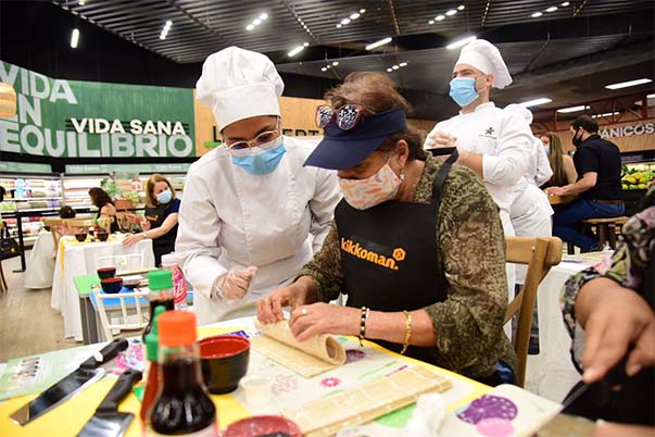 10 aprendices SENA dejaron de lado las ambientes de formación por un día, para demostrar su talento en la gastronomía y convertirse en instructores de cocina de la 1.ª Maratón de Sushi Éxito WOW VIVA, en la que se encargaron de guiar a los participantes en la elaboración de este plato típico asiático.