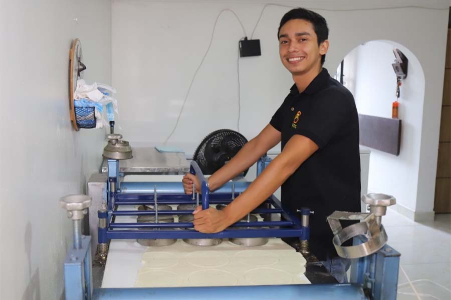 La producción artesanal que tardaba catorce horas, aproximadamente, llevó a que la pareja de talentos recibiera la asesoría de Tecnoparque Nodo Neiva con el fin de crear un sistema que optimizara el proceso de producción. Gracias a esta asesoría, crearon la matriz troqueladora para fabricación de arepas, un prototipo que no solo facilita el corte sino el moldeado de estas.