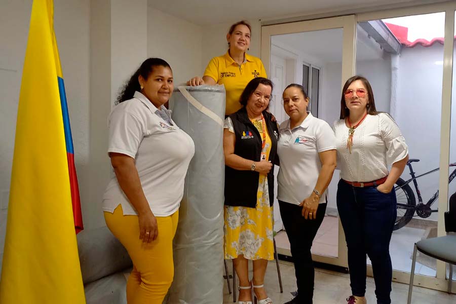 "La donación consistió en ocho rollos de tela de 150 metros cada uno, de diferentes texturas y colores, con los cuales se espera fortalecer sus emprendimientos", dijo Yhina Paola Lombana López, directora territorial Caquetá-Huila.