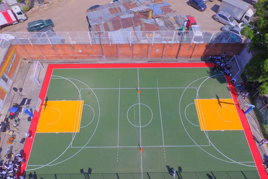 Esta nueva cancha tiene una particularidad de movimiento que permite trasladarse a cualquier espacio que se desee. Adicionalmente, está construida para la práctica de deportes como fútbol de salón, voleibol y baloncesto, así mismo, está diseñada para la práctica de danzas folclóricas y diferentes bailes específicos.