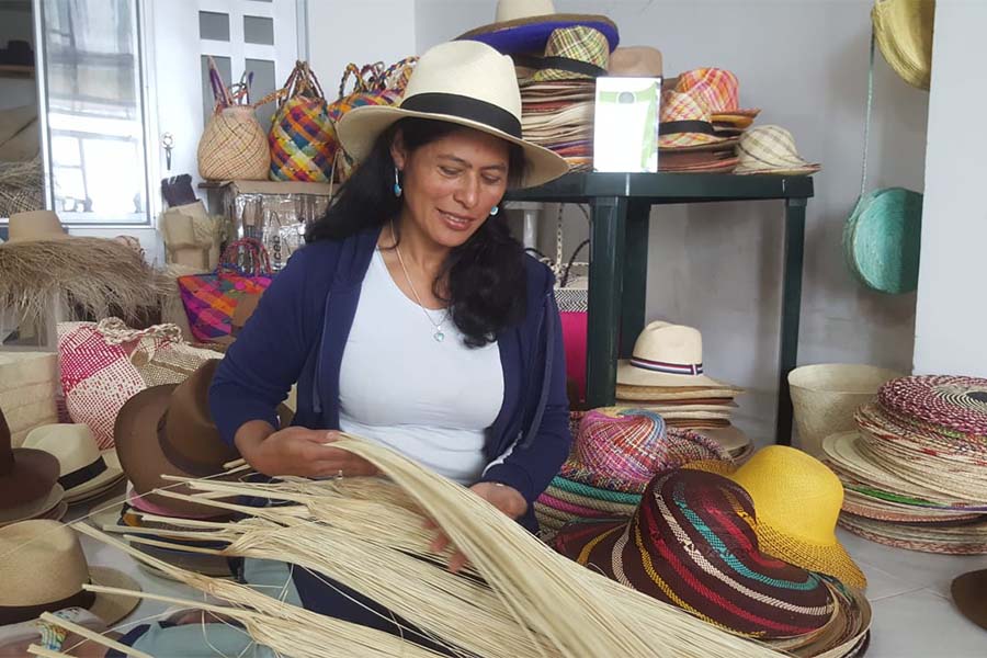 "Mediante el programa SENA Emprende Rural, ella y otras mujeres artesanas del municipio se han formado en la creación de empaques, elaboración de mochilas, apliques de iraca y otras formas que les han permitido innovar en su producción artesanal", expresa Diana Fuertes, dinamizadora del programa de Emprendimiento en Nariño.