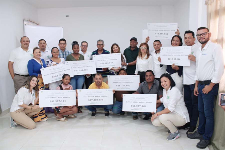 La entrega de cheques se realizó de manera presencial en el Salón Blanco de la Alcaldía de Clemencia.