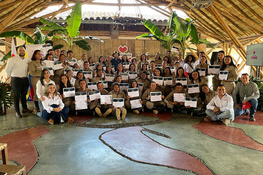 Cuarenta y tres campesinos de varias regiones de Colombia fueron certificados por el SENA, Regional Quindío, a través de formación complementaria en uniones, empalmes y ensambles para estructuras en guadua, como parte del Técnico Laboral Agropecuario desarrollado por la Fundación Panaca.