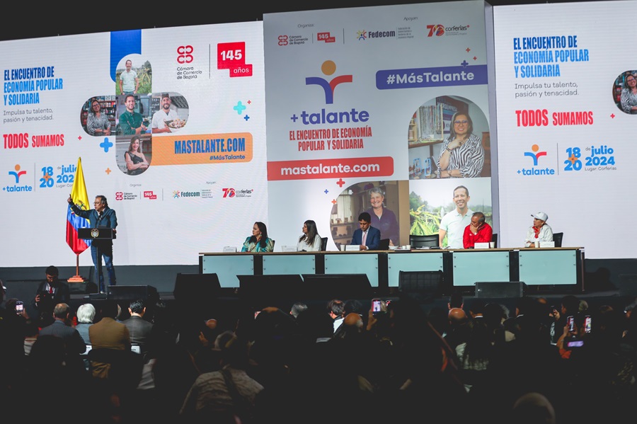 En su segundo día, la Feria ‘+Talante’ en Corferias contó con la destacada participación del presidente de la República, Gustavo Petro, durante el evento central: ‘Reconocimiento al aporte de la Economía Popular y Sector Solidario de Nuestro País +Talante’. Allí, subrayó la importancia de su impacto en el desarrollo del país.